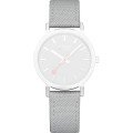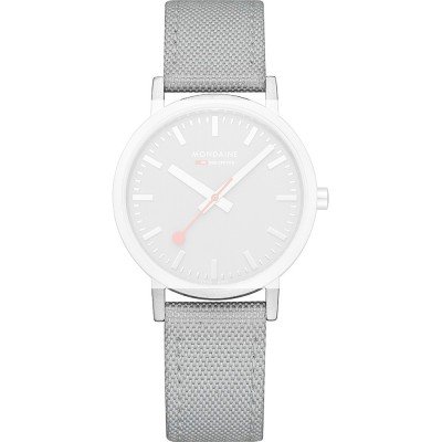 Esta correa de reloj de la :marca está hecha de textil y se adjunta al reloj mediante pasadores con resorte de liberación rápida. La banda tiene un ancho de 18 mm y se cierra mediante un hebilla. La correa tiene una montura recta, lo que significa que esta correa es adecuada para todos los relojes de la Mondaine con montura recta.
