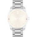 Esta correa de reloj de la :marca está hecha de acero inoxidable y se adjunta al reloj mediante pasadores de resorte. La banda tiene un ancho de 21 mm y se cierra mediante un cierre de mariposa con botones. La correa tiene una montura recta, lo que significa que esta correa es adecuada para todos los relojes de la Movado con montura recta.