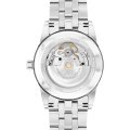 El Movado Museum Classic tiene una esfera que se acerca lo más posible al diseño original. Con un aspecto tan puro y minimalista, no hay lugar para el descuido. La esfera lacada con acabado mate -en la que sólo una pequeña ventana de fecha rompe la armonía- contrasta con el característico punto de mediodía. Las afiladas agujas Dauphine, bellamente talladas, añaden otra capa de nitidez y nivel de interés, mostrando una atención extrema al detalle. El reloj funciona con un movimiento automático suizo SW200 con 38 horas de reserva de marcha, visible a través del fondo de la caja.