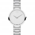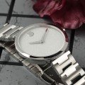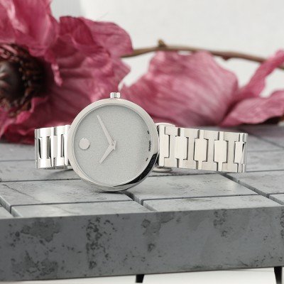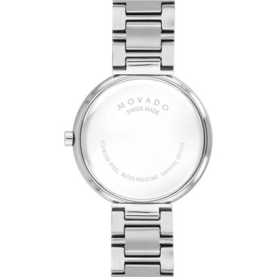 Este reloj marca Movado tiene una caja de Inox con un diámetro de 32 mm y cuenta con una correa de Inox. Dentro de la caja se encuentra un mecanismo de Ronda de alta calidad el cual esta protegido por un cristal Zafiro.