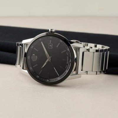 Este reloj marca Movado tiene una caja de Inox con un diámetro de 42 mm y cuenta con una correa de Inox. Dentro de la caja se encuentra un mecanismo de Ronda de alta calidad el cual esta protegido por un cristal Zafiro.
