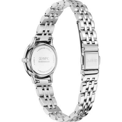 Este reloj marca Olympic tiene una caja de Inox con un diámetro de 26 mm y cuenta con una correa de Inox. Dentro de la caja se encuentra un mecanismo de Seiko Instruments Inc. de alta calidad el cual esta protegido por un cristal Mineral.