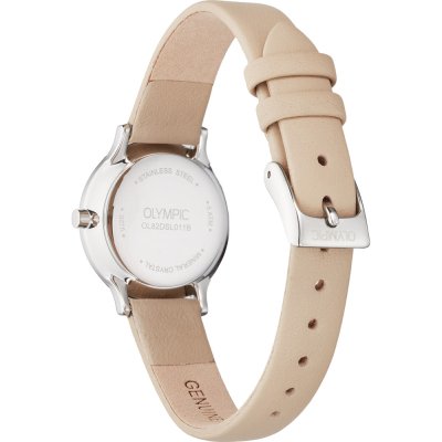 Este reloj marca Olympic tiene una caja de Inox con un diámetro de 26 mm y cuenta con una correa de piel. Dentro de la caja se encuentra un mecanismo de Seiko Instruments Inc. de alta calidad el cual esta protegido por un cristal Mineral.