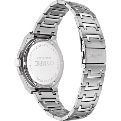 Este reloj marca Olympic tiene una caja de Inox con un diámetro de 44 mm y cuenta con una correa de Inox. Dentro de la caja se encuentra un mecanismo de Miyota de alta calidad el cual esta protegido por un cristal Zafiro.