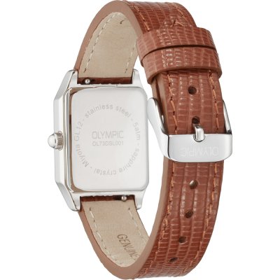 Este reloj marca Olympic tiene una caja de Inox con un diámetro de 23 mm y cuenta con una correa de piel. Dentro de la caja se encuentra un mecanismo de Miyota de alta calidad el cual esta protegido por un cristal Zafiro.