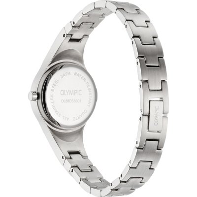 Este reloj marca Olympic tiene una caja de Inox con un diámetro de 26 mm y cuenta con una correa de Inox. Dentro de la caja se encuentra un mecanismo de Seiko de alta calidad el cual esta protegido por un cristal Mineral.
