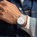 El reloj es resistente al agua hasta 5 ATM. Esto significa que el reloj es adecuado para la ducha. El reloj viene con 3 años de garantía.
