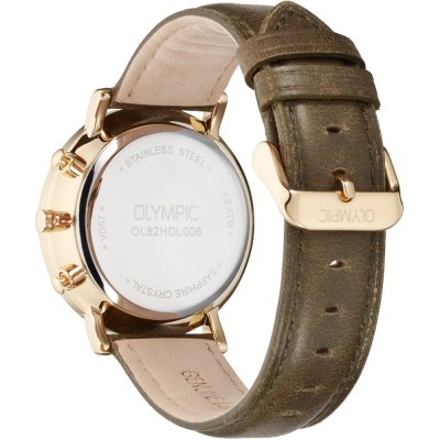 Este reloj marca Olympic tiene una caja de Inox con un diámetro de 40 mm y cuenta con una correa de piel. Dentro de la caja se encuentra un mecanismo de Seiko Instruments Inc. de alta calidad el cual esta protegido por un cristal Zafiro.