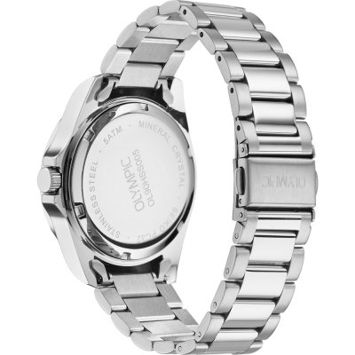 Este reloj marca Olympic tiene una caja de Inox con un diámetro de 40 mm y cuenta con una correa de Inox. Dentro de la caja se encuentra un mecanismo de Seiko Instruments Inc. de alta calidad el cual esta protegido por un cristal Mineral.