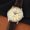 Este reloj marca Orient tiene una caja de Inox con un diámetro de 40 mm y cuenta con una correa de piel. Dentro de la caja se encuentra un mecanismo de Orient de alta calidad el cual esta protegido por un cristal Mineral.