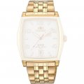 Esta correa de reloj de la :marca está hecha de acero inoxidable y se adjunta al reloj mediante pasadores de resorte. La banda tiene un ancho de 24 mm y se cierra mediante un cierre desplegable con botones pulsadores. La correa no tiene montura recta, lo que significa que esta correa sólo es adecuada para los relojes que se indican a continuación.