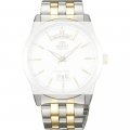 Esta correa de reloj de la :marca está hecha de acero inoxidable y se adjunta al reloj mediante pasadores de resorte. La banda tiene un ancho de 22 mm y se cierra mediante un cierre desplegable con botones pulsadores. La correa no tiene montura recta, lo que significa que esta correa sólo es adecuada para los relojes que se indican a continuación.