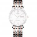 Esta correa de reloj de la :marca está hecha de acero inoxidable y se adjunta al reloj mediante pasadores de resorte. La banda tiene un ancho de 22 mm y se cierra mediante un cierre desplegable con botones pulsadores. La correa no tiene montura recta, lo que significa que esta correa sólo es adecuada para los relojes que se indican a continuación.