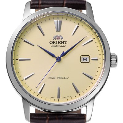 Este reloj marca Orient tiene una caja de Inox con un diámetro de 42 mm y cuenta con una correa de piel. Dentro de la caja se encuentra un mecanismo de Orient de alta calidad el cual esta protegido por un cristal Mineral.