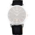 Esta correa de reloj de la :marca está hecha de cuero y se adjunta al reloj mediante pasadores de resorte. La banda tiene un ancho de 20 mm y se cierra mediante un hebilla. La correa tiene una montura recta, lo que significa que esta correa es adecuada para todos los relojes de la Orient con montura recta.
