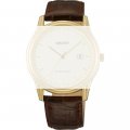 Esta correa de reloj de la :marca está hecha de cuero y se adjunta al reloj mediante pasadores de resorte. La banda tiene un ancho de 20 mm y se cierra mediante un hebilla. La correa tiene una montura recta, lo que significa que esta correa es adecuada para todos los relojes de la Orient con montura recta.