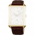 Esta correa de reloj de la :marca está hecha de cuero y se adjunta al reloj mediante pasadores de resorte. La banda tiene un ancho de 20 mm y se cierra mediante un hebilla. La correa tiene una montura recta, lo que significa que esta correa es adecuada para todos los relojes de la Orient con montura recta.