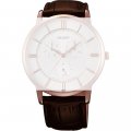 Esta correa de reloj de la :marca está hecha de cuero y se adjunta al reloj mediante pasadores de resorte. La banda tiene un ancho de 22 mm y se cierra mediante un hebilla. La correa tiene una montura recta, lo que significa que esta correa es adecuada para todos los relojes de la Orient con montura recta.