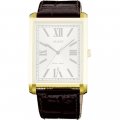 Esta correa de reloj de la :marca está hecha de cuero y se adjunta al reloj mediante pasadores de resorte. La banda tiene un ancho de 22 mm y se cierra mediante un hebilla. La correa tiene una montura recta, lo que significa que esta correa es adecuada para todos los relojes de la Orient con montura recta.