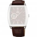 Esta correa de reloj de la :marca está hecha de cuero y se adjunta al reloj mediante pasadores de resorte. La banda tiene un ancho de 22 mm y se cierra mediante un hebilla. La correa tiene una montura recta, lo que significa que esta correa es adecuada para todos los relojes de la Orient con montura recta.