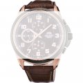 Esta correa de reloj de la :marca está hecha de cuero y se adjunta al reloj mediante pasadores de resorte. La banda tiene un ancho de 24 mm y se cierra mediante un hebilla. La correa tiene una montura recta, lo que significa que esta correa es adecuada para todos los relojes de la Orient con montura recta.