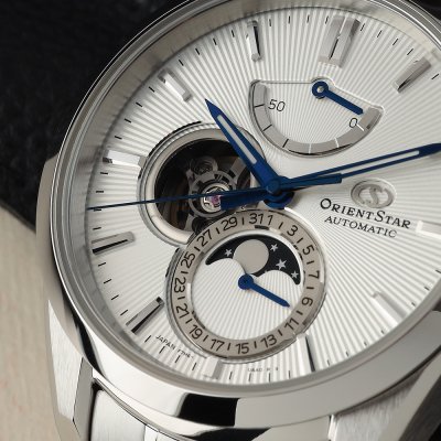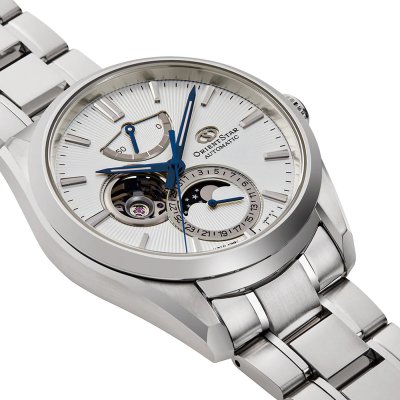 Este reloj marca Orient tiene una caja de Inox con un diámetro de 41 mm y cuenta con una correa de Inox. Dentro de la caja se encuentra un mecanismo de Orient de alta calidad el cual esta protegido por un cristal Zafiro antirreflectante solitario.