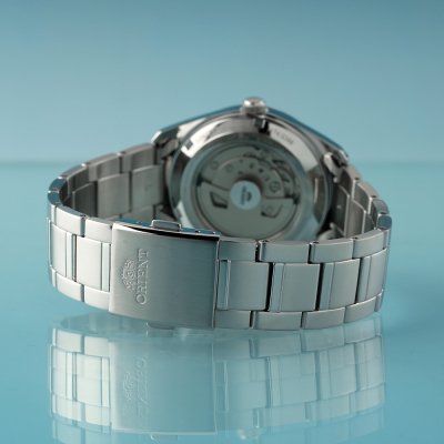 Este reloj marca Orient tiene una caja de Inox con un diámetro de 38.5 mm y cuenta con una correa de Inox. Dentro de la caja se encuentra un mecanismo de Orient de alta calidad el cual esta protegido por un cristal Zafiro.