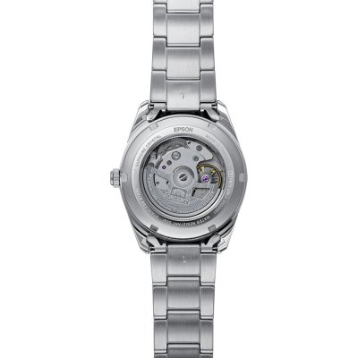 Este reloj marca Orient tiene una caja de Inox con un diámetro de 38.5 mm y cuenta con una correa de Inox. Dentro de la caja se encuentra un mecanismo de Orient de alta calidad el cual esta protegido por un cristal Zafiro.