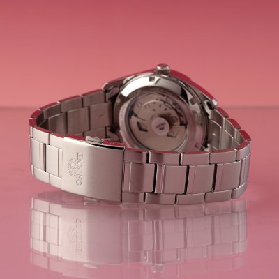 Este reloj marca Orient tiene una caja de Inox con un diámetro de 38.5 mm y cuenta con una correa de Inox. Dentro de la caja se encuentra un mecanismo de Orient de alta calidad el cual esta protegido por un cristal Zafiro.