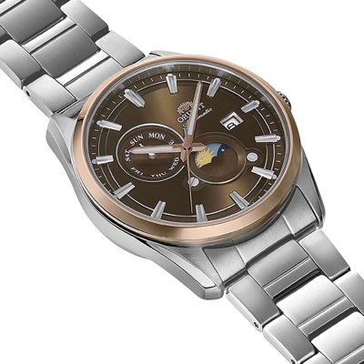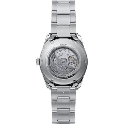 Este reloj marca Orient tiene una caja de Inox con un diámetro de 41 mm y cuenta con una correa de Inox. Dentro de la caja se encuentra un mecanismo de Epson de alta calidad el cual esta protegido por un cristal Zafiro.