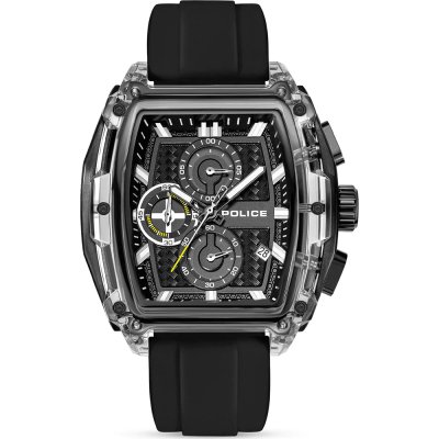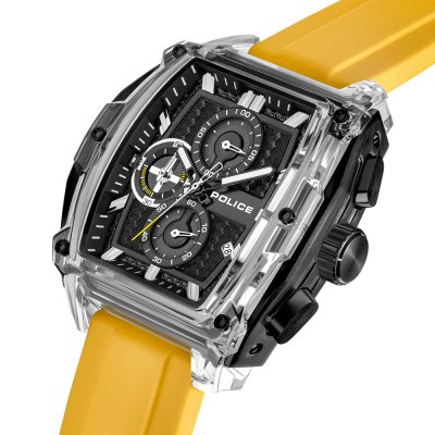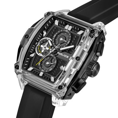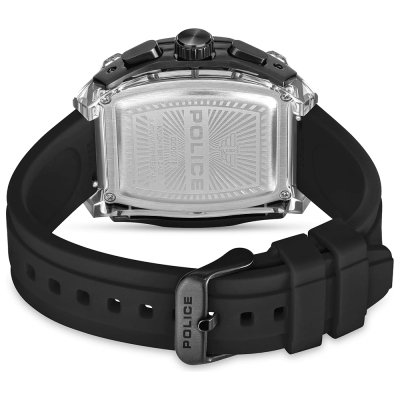 Este reloj marca Police tiene una caja de Resina con un diámetro de 46 mm y cuenta con una correa de Goma. Dentro de la caja se encuentra un mecanismo de Seiko Instruments Inc. de alta calidad el cual esta protegido por un cristal Mineral.