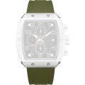 Esta correa de reloj de la :marca está hecha de goma de silicona y se adjunta al reloj mediante pasadores de resorte. La banda tiene un ancho de 26 mm y se cierra mediante un hebilla. La correa tiene una montura recta, lo que significa que esta correa es adecuada para todos los relojes de la Police con montura recta.