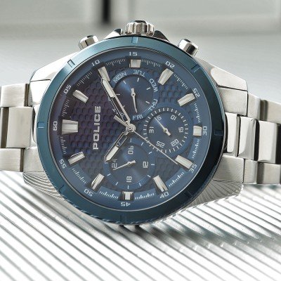 Este reloj marca Police tiene una caja de Inox con un diámetro de 45 mm y cuenta con una correa de Inox. Dentro de la caja se encuentra un mecanismo de Seiko Instruments Inc. de alta calidad el cual esta protegido por un cristal Mineral.