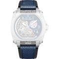 Esta correa de reloj de la :marca está hecha de piel sobre silicona y se adjunta al reloj mediante pasadores de resorte. La banda tiene un ancho de 26 mm y se cierra mediante un hebilla. La correa no tiene montura recta, lo que significa que esta correa sólo es adecuada para los relojes que se indican a continuación.