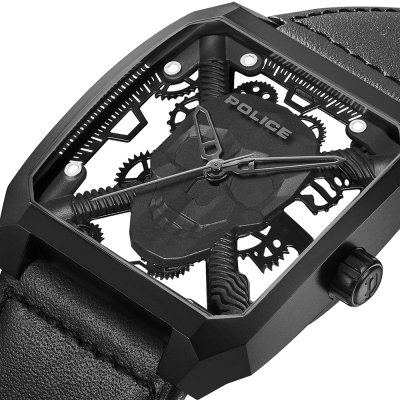 Este reloj marca Police tiene una caja de Inox con un diámetro de 39 mm y cuenta con una correa de piel. Dentro de la caja se encuentra un mecanismo de Miyota de alta calidad el cual esta protegido por un cristal Mineral.