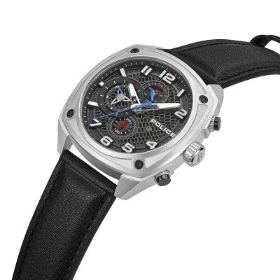 Este reloj marca Police tiene una caja de Inox con un diámetro de 45 mm y cuenta con una correa de piel. Dentro de la caja se encuentra un mecanismo de Seiko Instruments Inc. de alta calidad el cual esta protegido por un cristal Mineral.