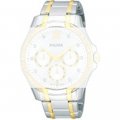 Esta correa de reloj de la :marca está hecha de acero inoxidable y se adjunta al reloj mediante pasadores de resorte. La banda tiene un ancho de 19 mm y se cierra mediante un cierre desplegable con botones pulsadores. La correa no tiene montura recta, lo que significa que esta correa sólo es adecuada para los relojes que se indican a continuación.