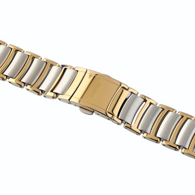 Esta correa de reloj de la :marca está hecha de acero inoxidable y se adjunta al reloj mediante pasador y tubo. La banda tiene un ancho de 16 mm y se cierra mediante un cierre desplegable con botones pulsadores. La correa no tiene montura recta, lo que significa que esta correa sólo es adecuada para los relojes que se indican a continuación.