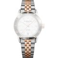 Esta correa de reloj de la :marca está hecha de metal y se adjunta al reloj mediante pasadores de resorte. La banda tiene un ancho de 18 mm y se cierra mediante un cierre de mariposa con botones. La correa no tiene montura recta, lo que significa que esta correa sólo es adecuada para los relojes que se indican a continuación.