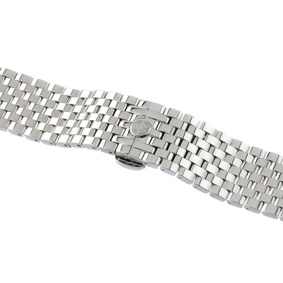 Esta correa de reloj de la :marca está hecha de acero inoxidable y se adjunta al reloj mediante pasadores de resorte. La banda tiene un ancho de 21 mm y se cierra mediante un cierre de mariposa con botones. La correa no tiene montura recta, lo que significa que esta correa sólo es adecuada para los relojes que se indican a continuación.