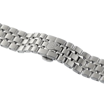 Esta correa de reloj de la :marca está hecha de acero inoxidable y se adjunta al reloj mediante pasadores de resorte. La banda tiene un ancho de 20 mm y se cierra mediante un cierre de mariposa con botones. La correa no tiene montura recta, lo que significa que esta correa sólo es adecuada para los relojes que se indican a continuación.