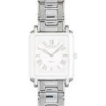 Esta correa de reloj de la :marca está hecha de metal y se adjunta al reloj mediante pasadores de resorte. La banda tiene un ancho de 20 mm y se cierra mediante un cierre de mariposa con botones. La correa no tiene montura recta, lo que significa que esta correa sólo es adecuada para los relojes que se indican a continuación.