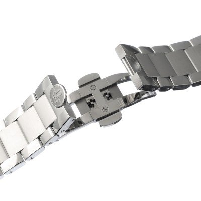 Esta correa de reloj de la :marca está hecha de acero inoxidable y se adjunta al reloj mediante pasadores de resorte. La banda tiene un ancho de 21 mm y se cierra mediante un cierre de mariposa con botones. La correa no tiene montura recta, lo que significa que esta correa sólo es adecuada para los relojes que se indican a continuación.
