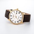 Este reloj marca Roamer tiene una caja de Inox con un diámetro de 40 mm y cuenta con una correa de piel. Dentro de la caja se encuentra un mecanismo de Ronda de alta calidad el cual esta protegido por un cristal Zafiro.