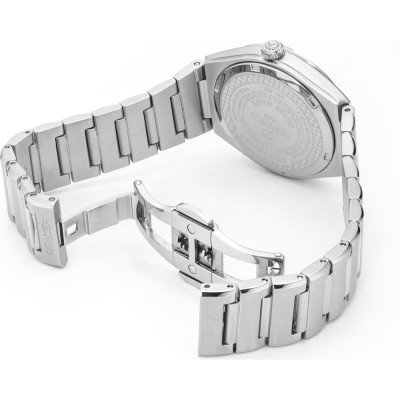 Este reloj marca Roamer tiene una caja de Inox con un diámetro de 34 mm y cuenta con una correa de Inox. Dentro de la caja se encuentra un mecanismo de Ronda de alta calidad el cual esta protegido por un cristal Zafiro.