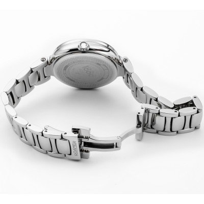 Este reloj marca Roamer tiene una caja de Inox con un diámetro de 36 mm y cuenta con una correa de Inox. Dentro de la caja se encuentra un mecanismo de Ronda de alta calidad el cual esta protegido por un cristal Zafiro.