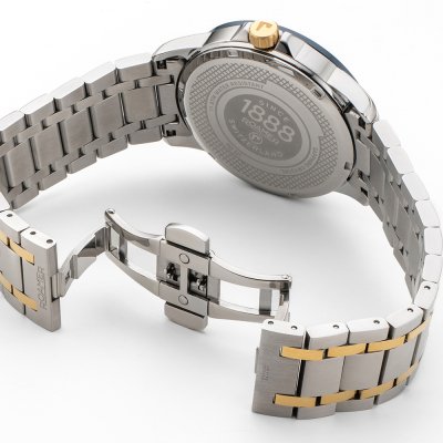 Este reloj marca Roamer tiene una caja de Inox con un diámetro de 42 mm y cuenta con una correa de Inox. Dentro de la caja se encuentra un mecanismo de Ronda de alta calidad el cual esta protegido por un cristal Zafiro.