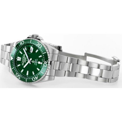 El reloj es resistente al agua hasta 20 ATM. Esto significa que el reloj es apto para el buceo. El reloj viene con Roamer 2+5.