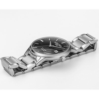 Este reloj marca Roamer tiene una caja de Inox con un diámetro de 43 mm y cuenta con una correa de Inox. Dentro de la caja se encuentra un mecanismo de Ronda de alta calidad el cual esta protegido por un cristal Zafiro.