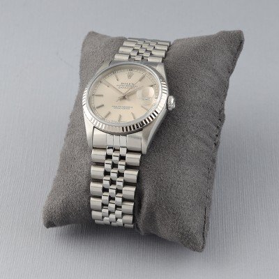 Descubra la belleza atemporal de este Rolex Datejust de 36 mm de 1987, una obra maestra de elegancia y artesanía. El diseño del Datejust ha permanecido prácticamente inalterado desde su introducción en 1945. El bisel estriado (dentado), la fecha con lupa y el brazalete jubileo son muy reconocibles y típicos de este deseable modelo. Fabricado íntegramente en acero inoxidable de alta calidad, este emblemático reloj encarna el estilo clásico por el que se conoce a Rolex, con un toque de encanto vintage. El reloj está en buen estado y tiene 6 meses de garantía HWG.